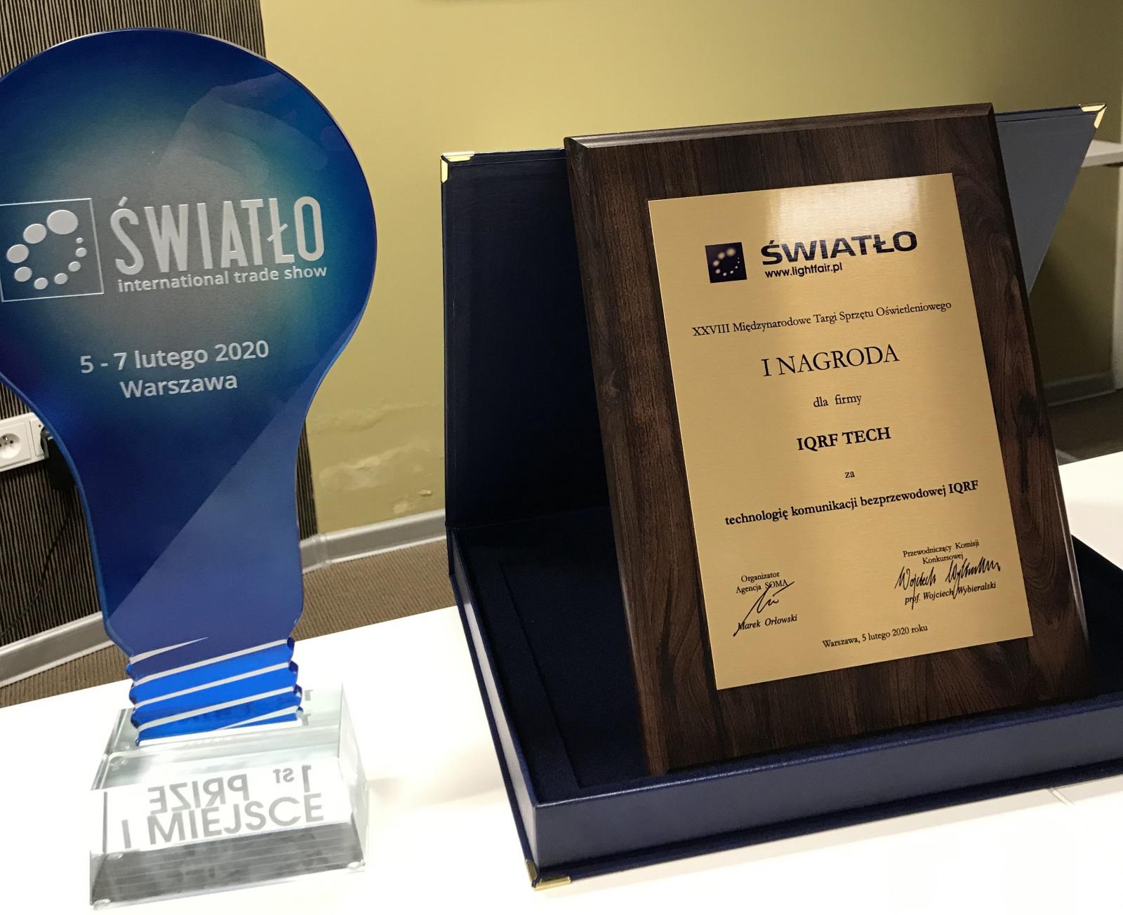 IQRF technology has been awarded at 28th International Trade Show of Lighting Equipment in competition for the best product. IQRF got the first prize in the category “power systems, controls, components, optical systems”.